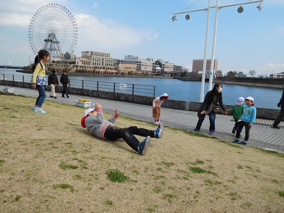 その後芝生の上を転がった子たちもいました。洋服が芝生だらけになることも気にせず、嬉しそうでした。