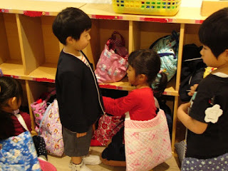 今日は週末なので、持ち帰る荷物もあります。おつかい袋に防災頭巾をしまったり、着替えを手伝ったりと、とても頼もしく感じました。