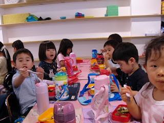 今日から年少組も給食が始まり、3学年全てが水曜日以外は午後までの保育になりました。