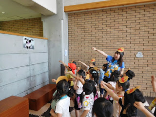 元気な声が遊戯室から聞こえてきました。行ってみると年中組さんが「あ~ん ぱんち!」と言って、遊戯室にいるバイキンマンやカビルンルンなどをやっつけていました。