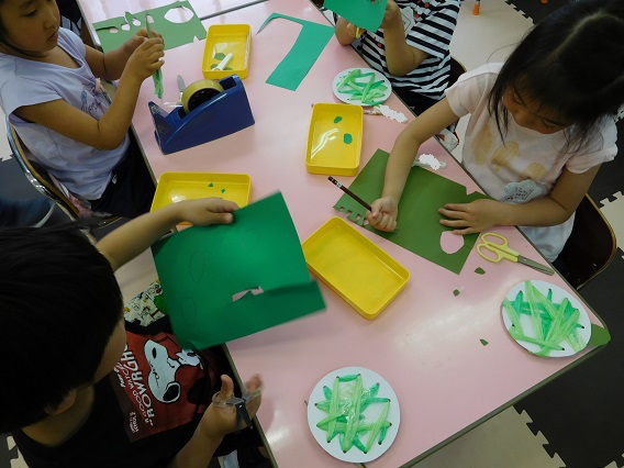 自分たちでどこにテープを通すか、手や顔の大きさや形をどうするか、等々自分で考え、手を動かして作っていきました。