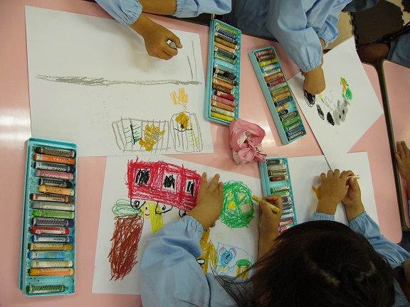友達の描いている様子を見て「そうやって描けば良いんだね」と刺激を受けていた子もいたようでした。