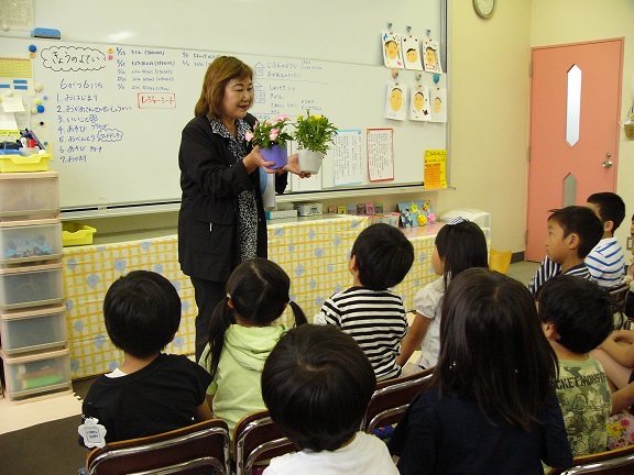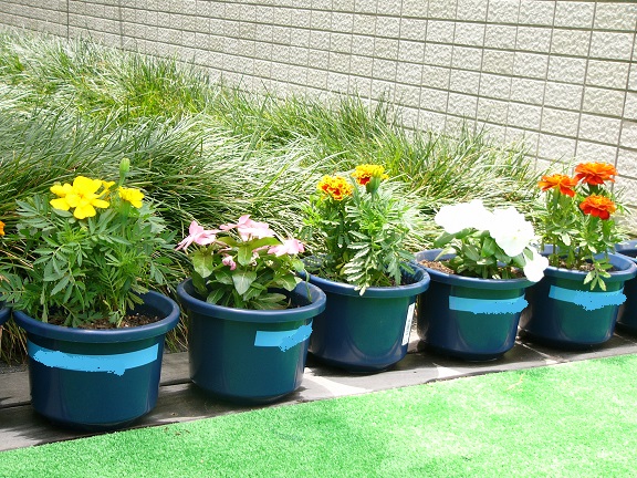 これからは、毎日様子を見、声を掛け(花は言葉をかけてあげるとわかって成長すると話しました。実際にはこまめに様子を見てもらうことが目的です)、必要であれば水を土にあげ、咲き終わった花柄は摘むことを行ってほしいと思います。