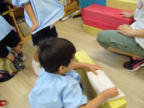 年少組にとっては初めての大掃除です。わかりやすく「ぞうきん」が登場し話をしてくれました。