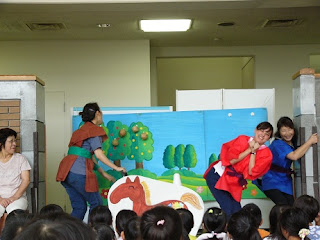 そして、先生たちからの「たかぎ劇場」では、「へっぴり女房」のお話を見せてもらいました。