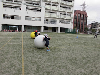 一度球を投げるとしばらく見ている子もいますが、時間内の勝負なので、急いで投げないといけません。頑張ってね。