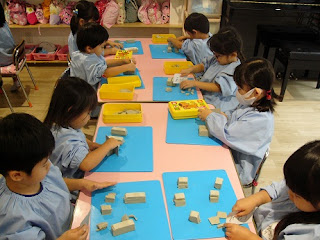 厚紙をナイフのようにし、切ったり、丸めたものに線を付け「メロンパン」を作る子もいました。
