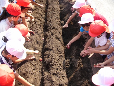 数年前から大豆戸小学校と一緒に行っているチューリップの球根植えです。小学校に進学するにあたり、少しでもドキドキが減り、わくわくが増えるよう、小学校の先生とも相談しながら進めている交流事業です。これからも続けていきたいと考えています。