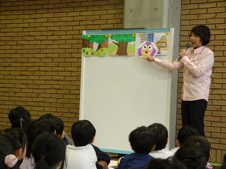 運動会で他の学年のお話も楽しめるよう、今日は3学年のお話を聞きました。