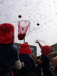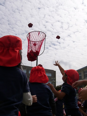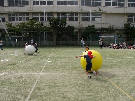 年長組の大玉ころがし。練習の成果が少し出たかな?