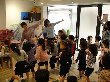 というお話でした。それに合わせた歌と踊りがあるということで、みんなで踊ってみました。