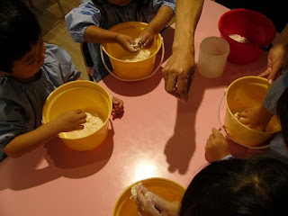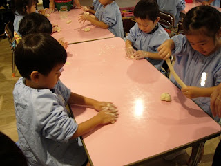 お母さん先生にも手伝っていただき、全員の「小麦粉粘土」が出来ました。