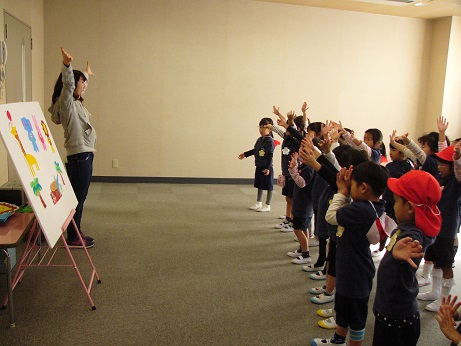 年中組は2つのグループに分かれ、それぞれのグループで違うお話の劇を教えてもらいました。