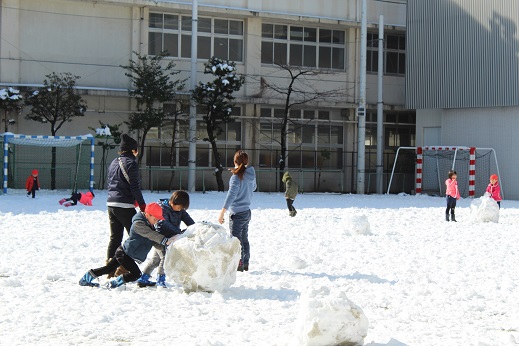 雪だるまを作ろうとする子もいました。