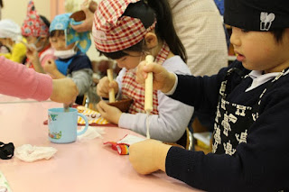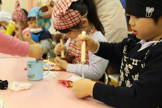 年長組は今日は「おもち」を作ることに挑戦していました。