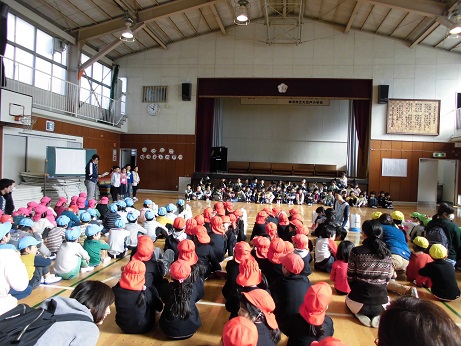 到着すると、小学生が体育館で待っていてくれました。