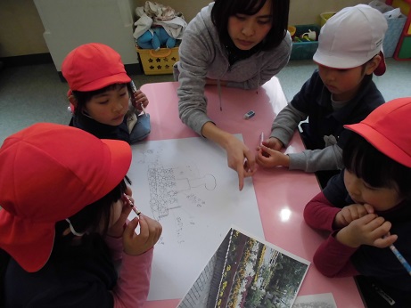 昨年の12月半ばに、年長組として造形展に参加するか、みんなで決め、参加するにあたりどんなものを表現していくかを相談しました。