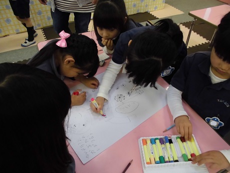 年長組の2クラスで話しあい、なんと生活発表会のお話の続きのような・・・(これ以上はまだ秘密です)。
