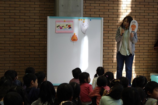 火事の時には煙も出ます。煙は上の方に上がっていくので、避難する時には小さくなって避難!ということも確認しました。