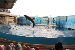 途中道が混んでいたので、予定を変更し11時前にお家の人が作ってくれた美味しいお弁当を食べ、イルカショーを見に。とても可愛らしいお弁当を、とっても喜んで食べていました。
