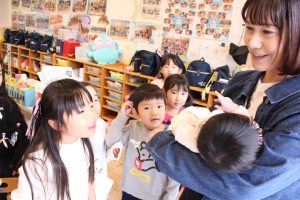 「かわいい~!」とみんな大興奮。みんなが小さかった頃のことも是非お家の人に聞いてみてね。