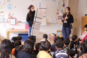 年長組は話し合い中。自分なりに色々考えて発言したり、友達や先生の話を聞いたり。