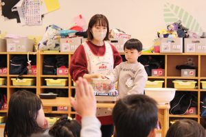 映画 といえば「ポップコーン」ということで、朝から2クラス、部屋でポップコーンを作っていました。良い匂いがしてきて、他のクラスの子達も見に来ていました。