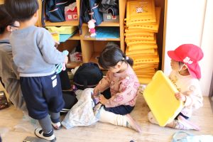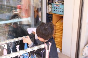 昨日は、年少・年長組が、大掃除に取り組んでいました。前回は夏休み前、約4ヶ月使った部屋やロッカー、靴箱などを綺麗にしました。年長組はこれまでに何回も経験してきているので、慣れたものです。