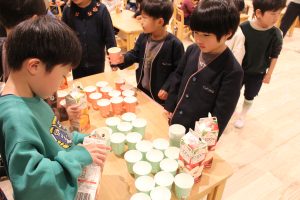年少・年中組さんに取りにきてもらい、ジュースも選んでもらい