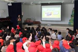 避難訓練から戻る時に「ちょっとこわかったよ」という声も聞かれましたが、予告があって地震がくる ということはないので、練習を重ね、ドキドキする中でも安全に避難出来る様にしていきたいと思います。