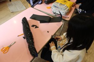 「鬼」は優しい鬼と怖い鬼を作るそうです。鬼には金棒が必要ということで、一生懸命作っていました。