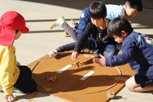今日もみんな元気でした。こまを回す子、なりきってダンスを楽しむ子