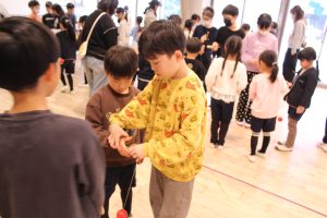 持ち方から教えてもらい、初めてやって技が出来た子もいました。また、これまでにも練習した子も小学生に見てもらい、嬉しそうでした。