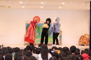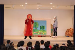 先生達の「たかぎ劇場」 今月は「北風と太陽」のお話でした。